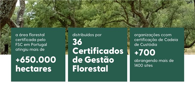 Cerca de vinte anos depois, a área florestal certificada pelo FSC em Portugal atingiu mais de 650.000 hectares, distribuídos por 36 Certificados de Gestão Florestal, e o aumento no número de certificados de Cadeia de Custódia (para mais de 700) traduziu um ritmo de crescimento ainda mais intenso.