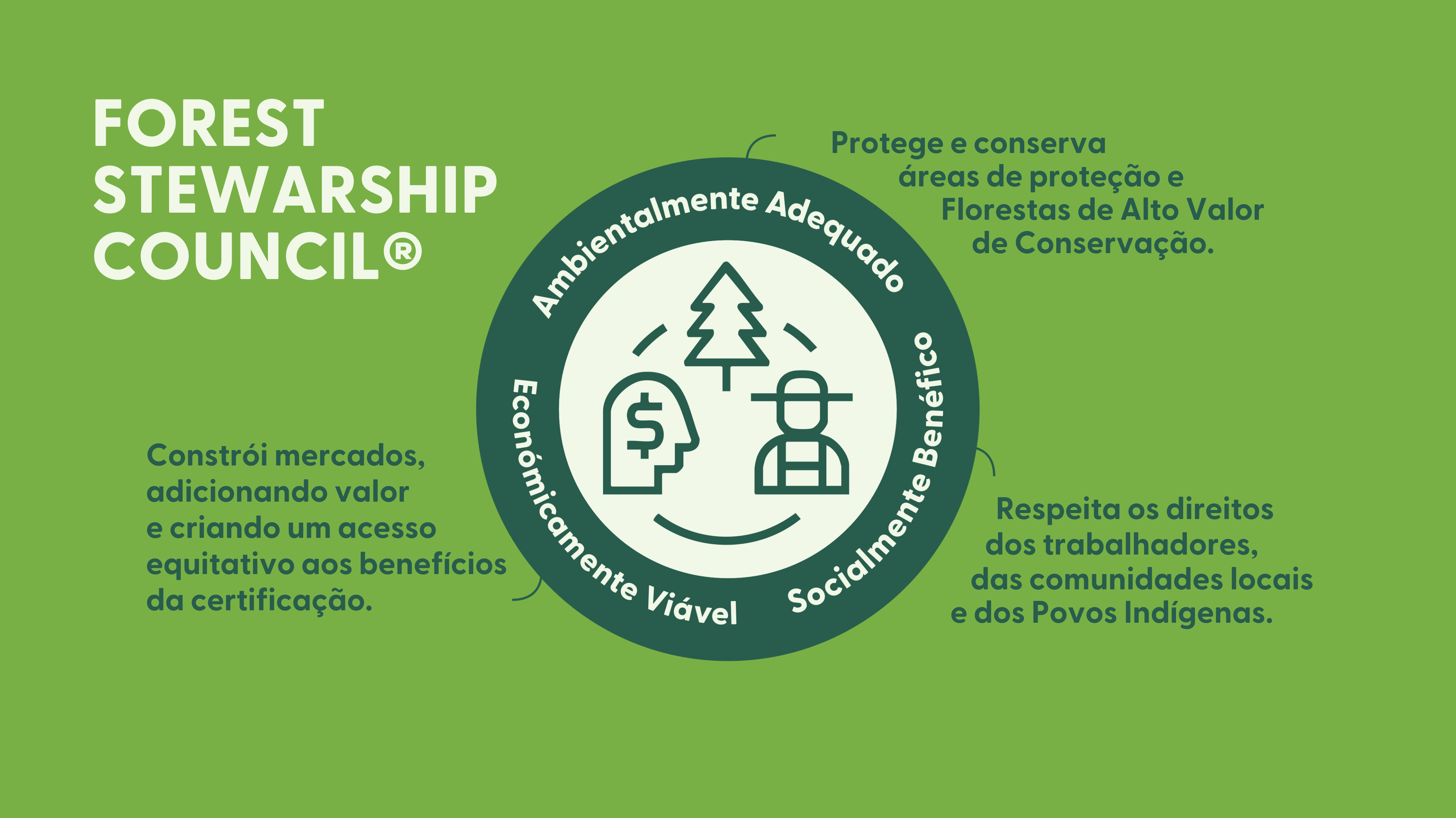 Existem 10 Princípios que qualquer operação florestal deve seguir antes de receber a certificação de gestão florestal FSC. Esses Princípios cobrem uma vasta gama de questões, desde a manutenção de altos valores de conservação até as relações com a comunidade e os direitos dos trabalhadores, bem como a monitorização dos impactos ambientais e sociais da gestão florestal. O FSC também estabelece uma série de critérios relacionados a cada Princípio, que fornecem orientações práticas de implementação dos requisitos. Os Princípios do FSC foram desenvolvidos para serem aplicáveis em todo o mundo e relevantes a todos os tipos de ecossistemas florestais, bem como a variados contextos culturais, políticos e jurídicos.
