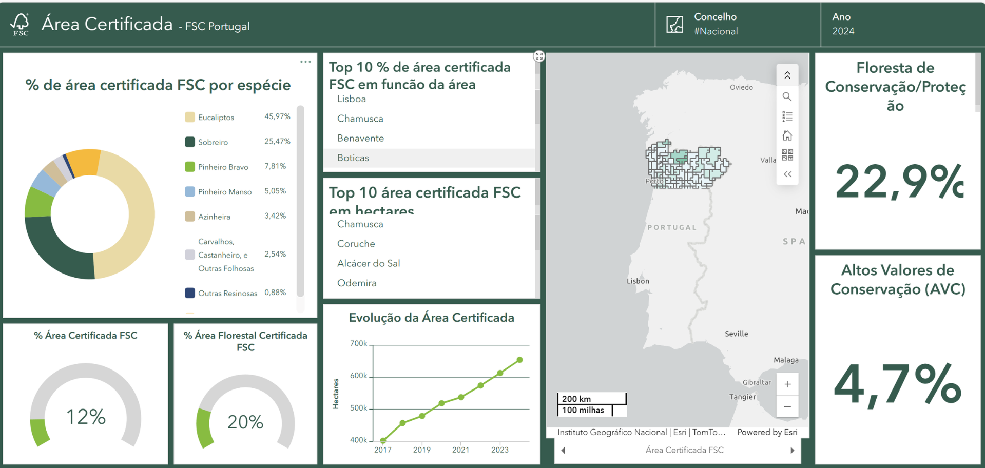 Acompanhe a evolução da gestão florestal responsável em Portugal, através de dados atualizados e ferramentas de visualização interativa