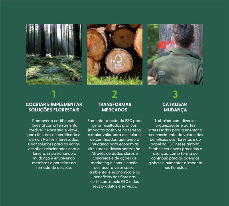 A Estratégia Global 2021-2026 apresenta a direção para o FSC construir os seus planos e projetos, com o propósito de alcançar os objetivos estabelecidos.
