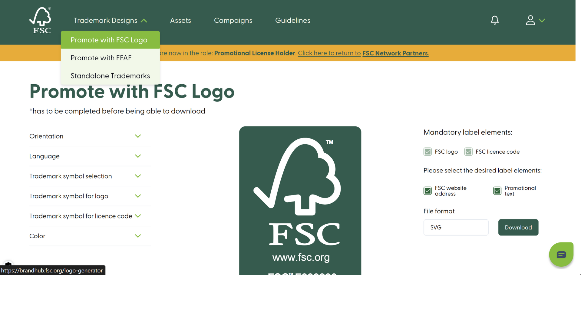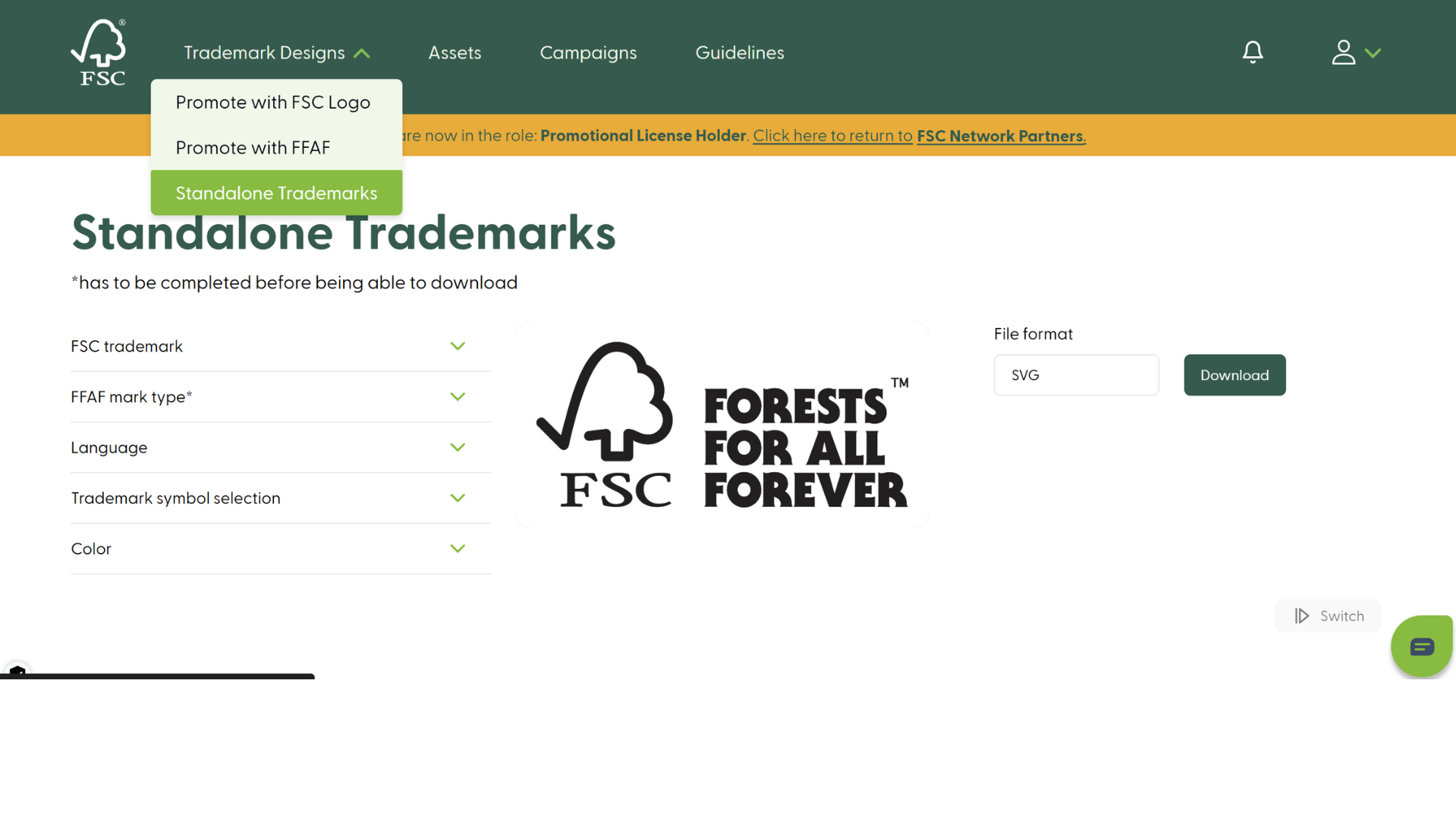 O acesso ao FSC Brand Hub é restrito a organizações Titulares de Licença Promocional, que assinaram um PLA (Promtional License Agreement), sendo assim detentores de um código de licença do FSC. Para entrar, basta utilizar as credenciais de acesso disponibilizadas aquando da assinatura do PLA.