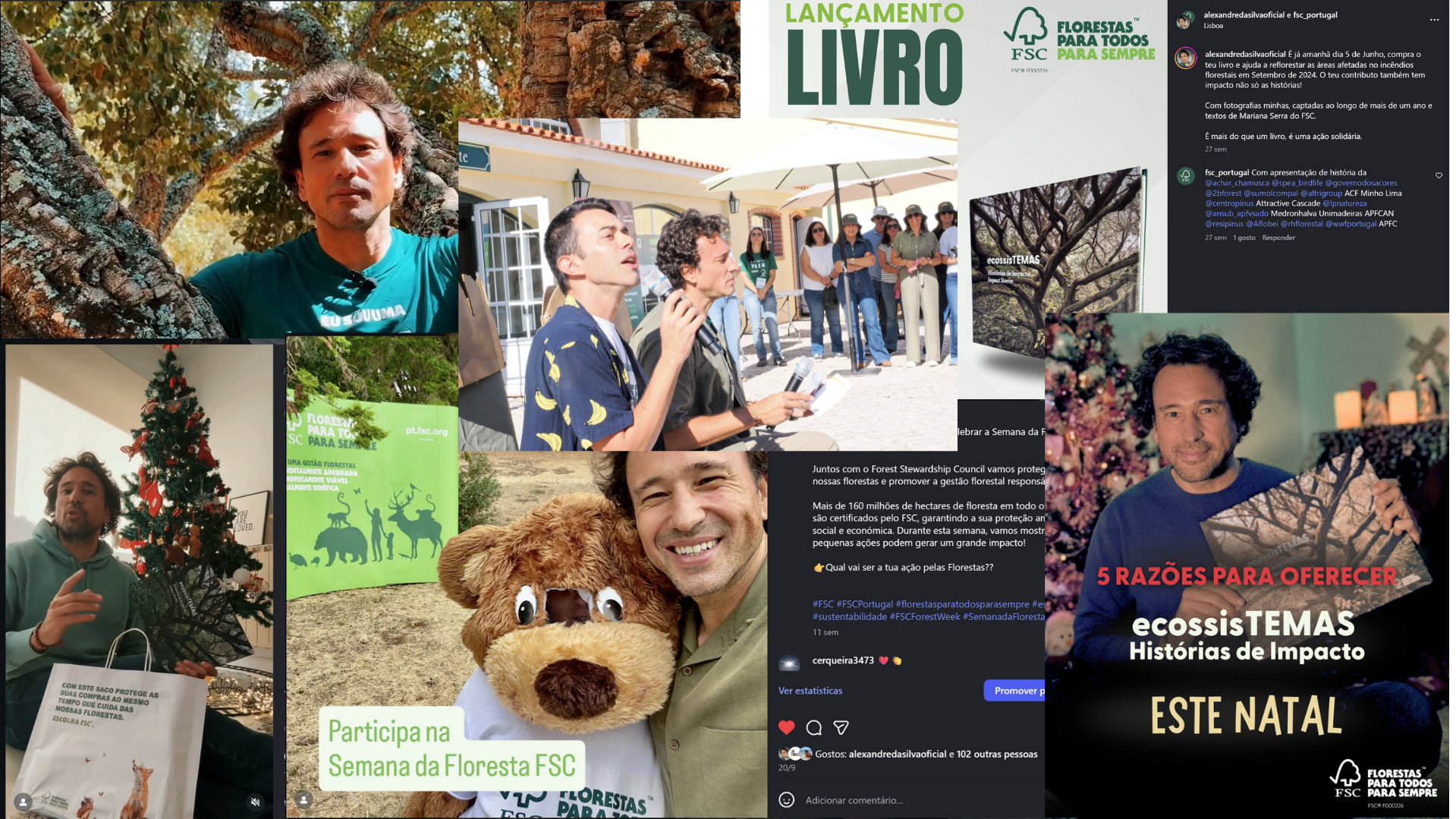 Alexandre da Silva, garantiu ainda a sua presença em eventos cruciais da organização, como o lançamento do livro ecossistemas – Histórias de Impacto e FSC Friday, momentos partilhados com o ator e também embaixador do FSC Portugal, Ricardo Raposo, ligando a marca FSC a figuras públicas credíveis e com forte alcance digital.