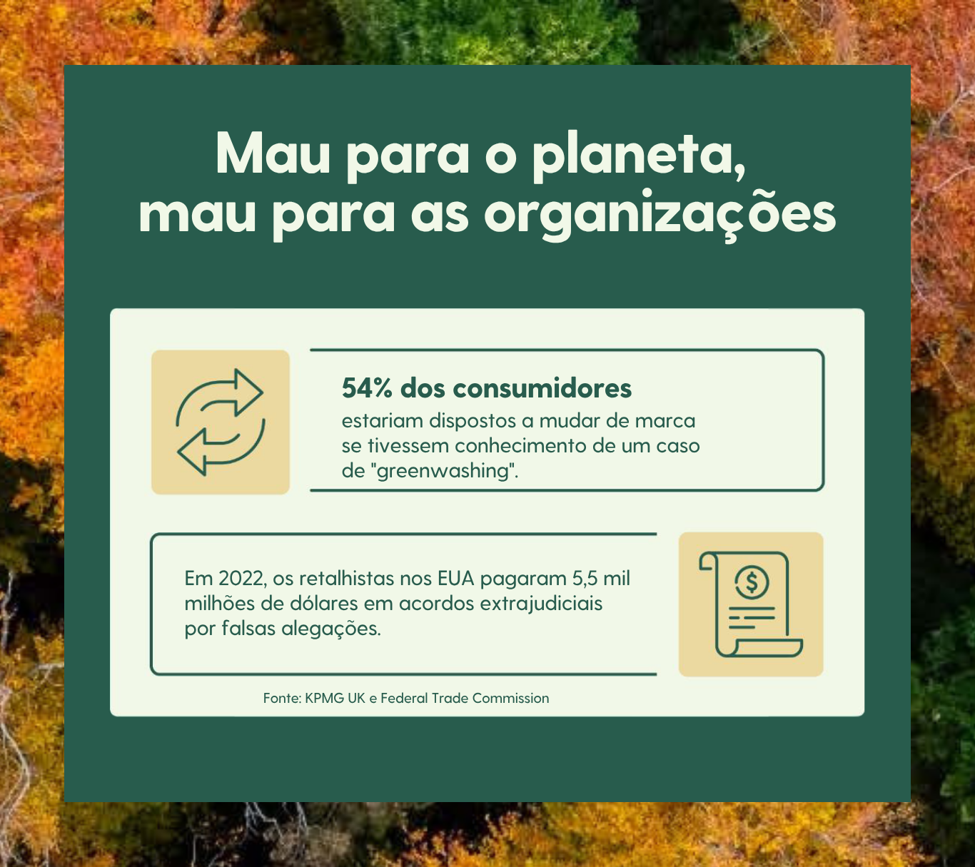 De acordo com um inquérito realizado pela KPMG UK, 54% dos consumidores afirmaram que mudariam de marca se descobrissem que as alegações ambientais eram enganosas. Os consumidores estão cada vez mais informados e procuram ativamente organizações com um compromisso genuíno com a sustentabilidade.