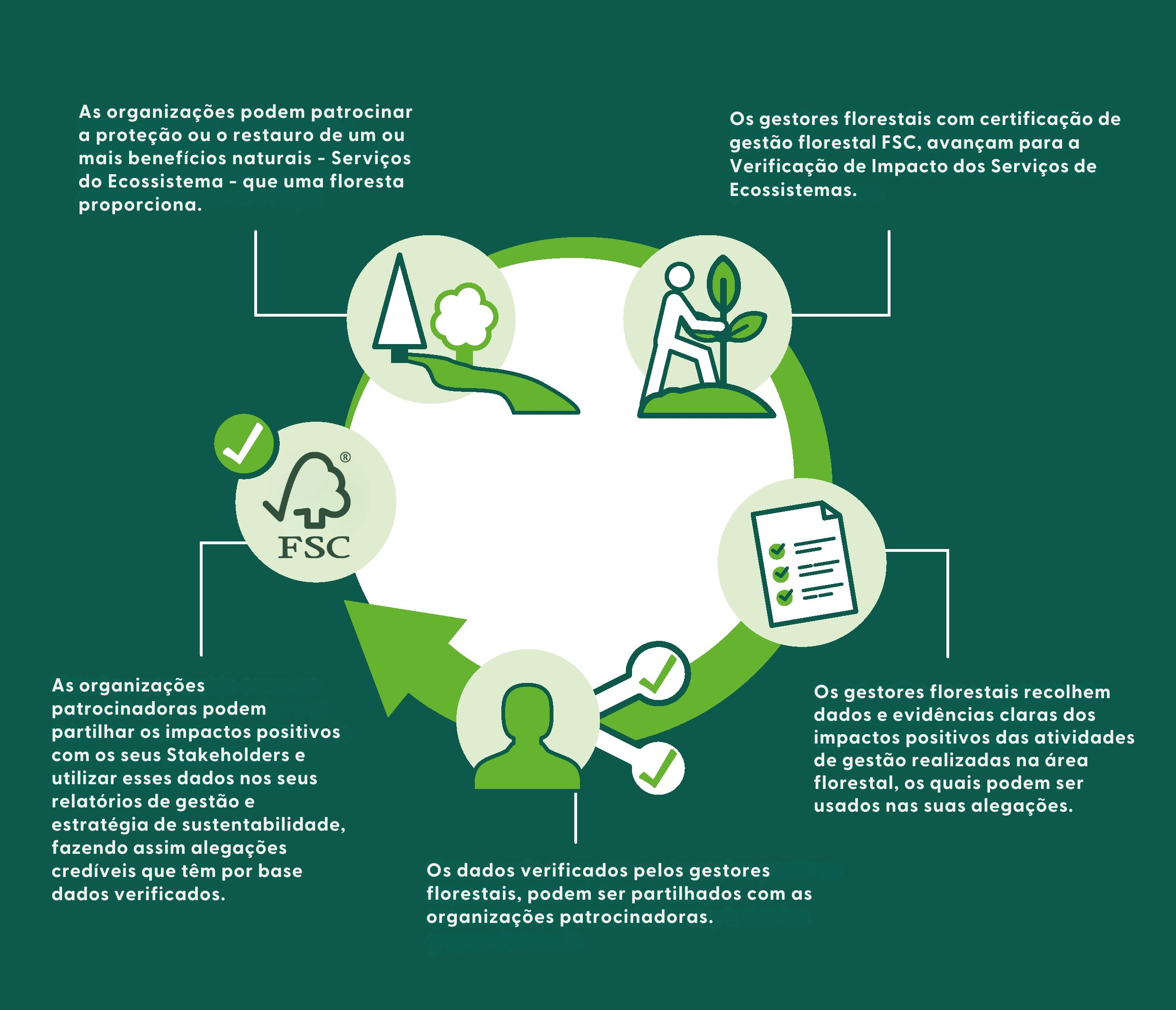 As florestas são muito mais do que árvores. Elas dão-nos inúmeros benefícios que precisamos de proteger e restaurar. Por isso, o Procedimento dos Serviços dos Ecossistemas do FSC é uma ferramenta que possibilita a proteção dos referidos benefícios, recompensando os proprietários florestais, bem como as organizações comprometidas com este procedimento.