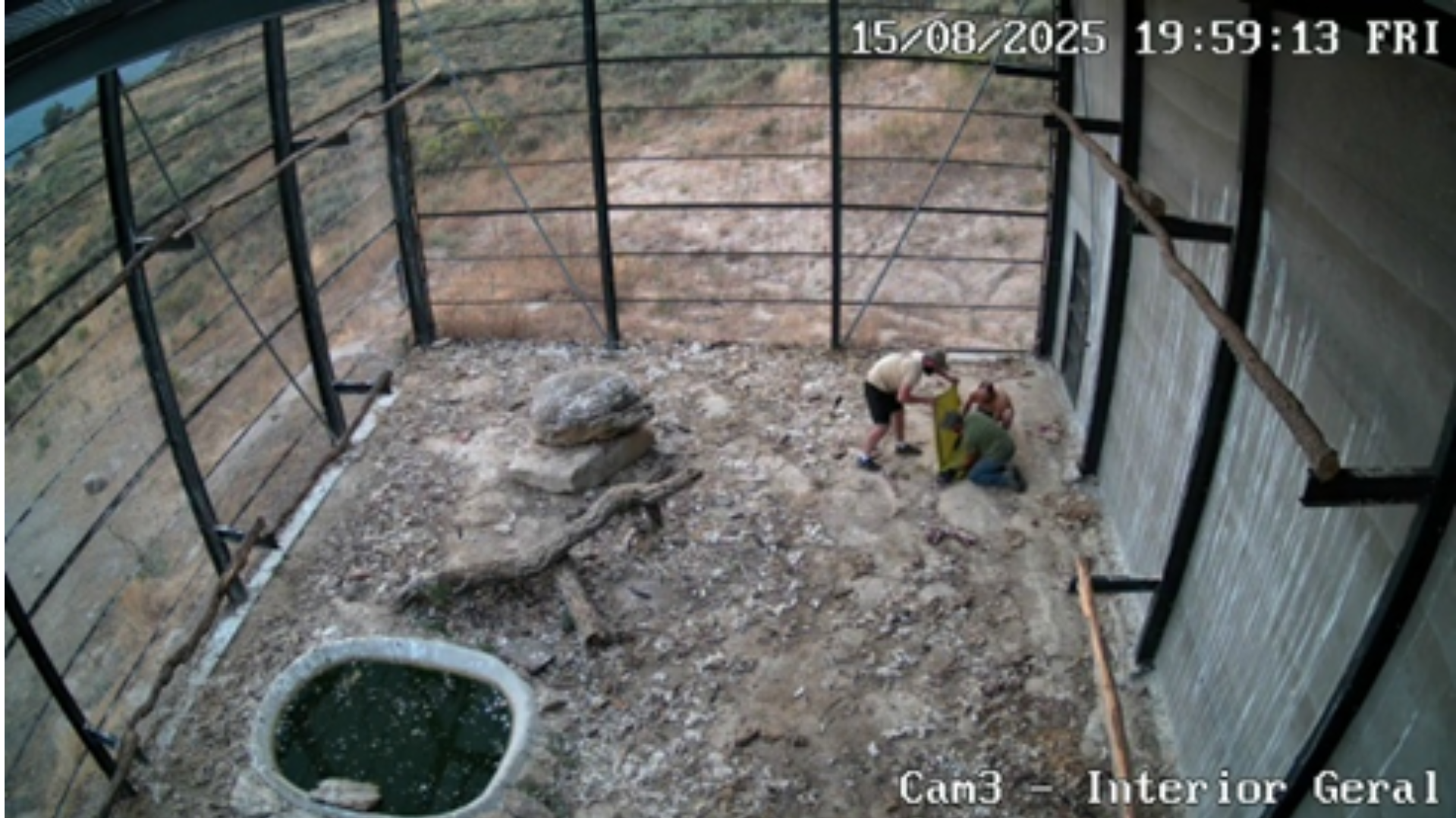 É fundamental restaurar o habitat em torno da jaula, principalmente no campo de alimentação, bem como repor o contentor de apoio. O contentor, que assegura a vigilância das aves em aclimatação e da envolvente – permitindo monitorizar comportamentos de alimentação, socialização e interação com aves selvagens –, funcionava com energia solar. Arderam os painéis fotovoltaicos, a cablagem, o inversor de energia e outro equipamento eletrónico essencial, num investimento que, em 2023, ascendeu a mais de 15.000 euros.