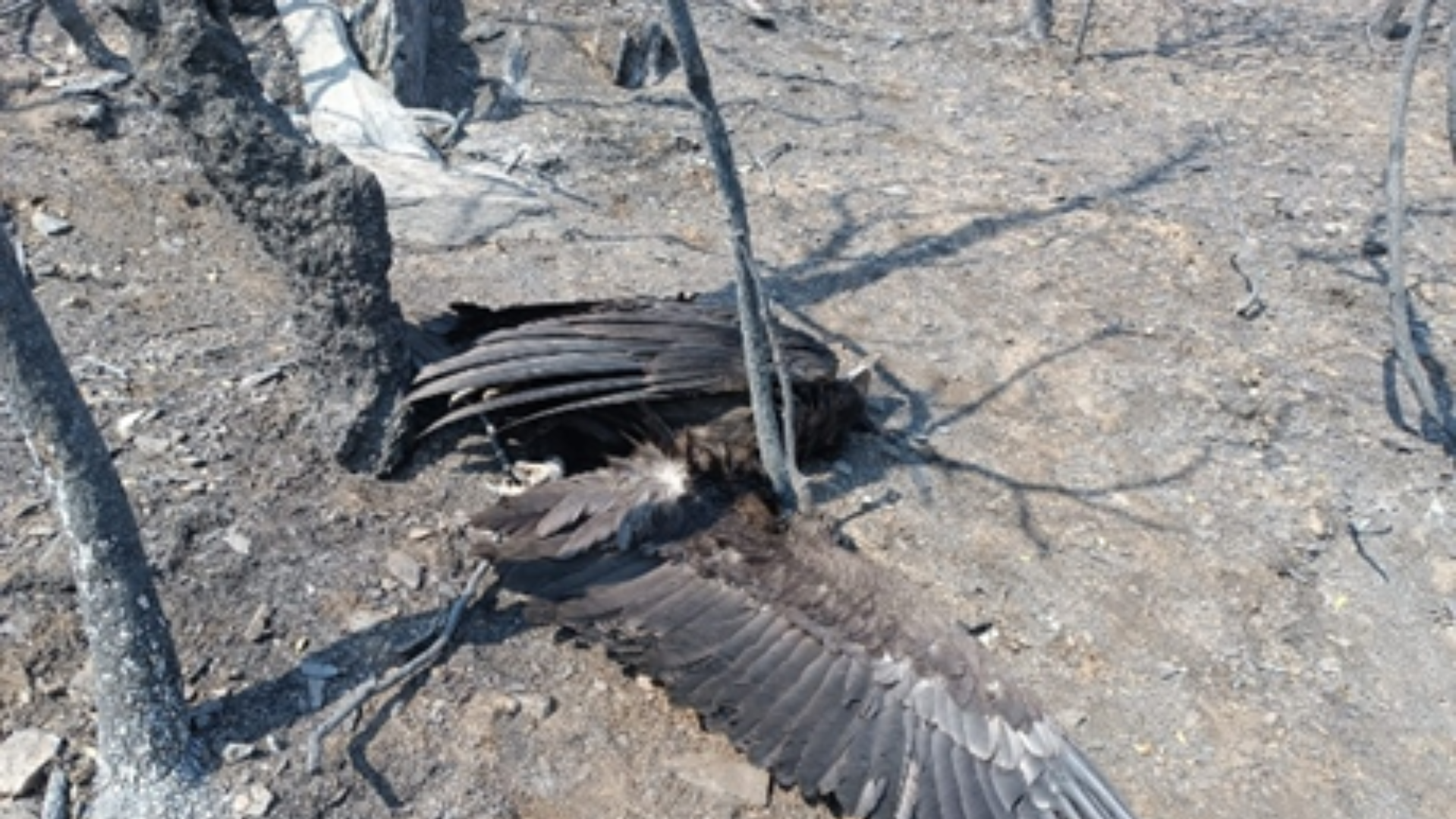 Quando o fogo e o fumo permitiram o acesso aos locais, foi possível verificar que o ninho da cria não voadora foi impactado por chamas muito próximas, e que a cria já não se encontrava nele.